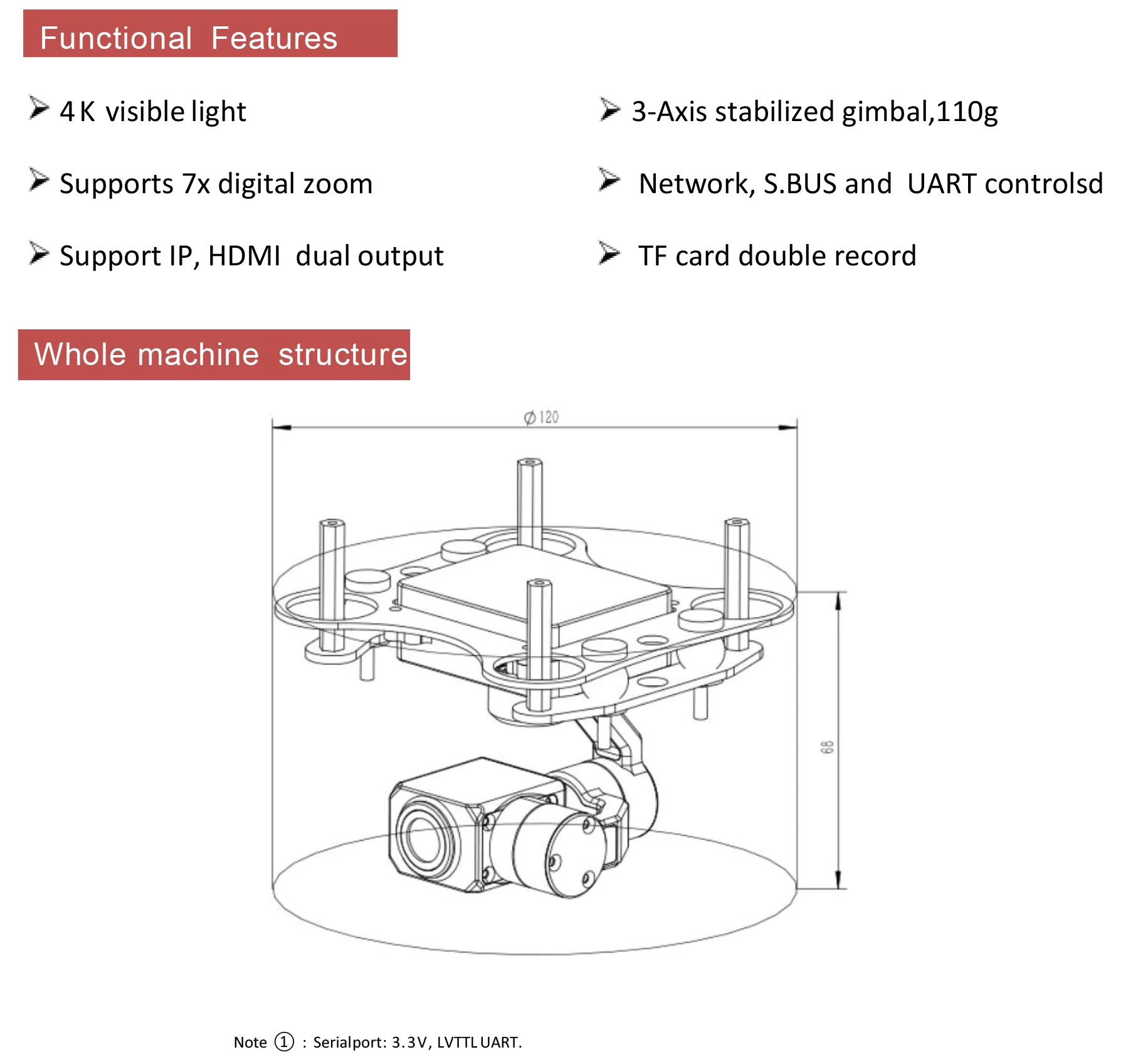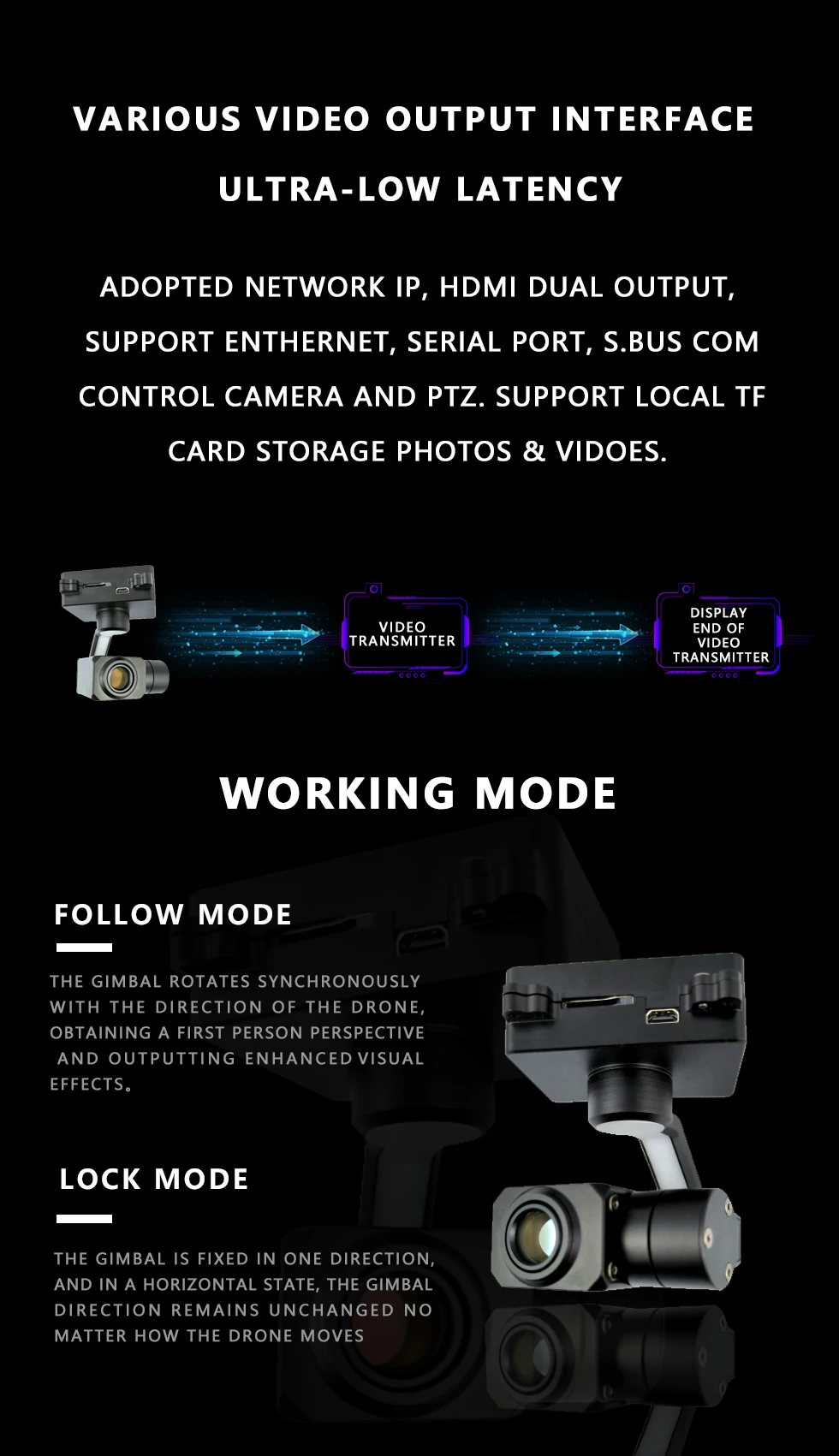 4K Visible Light 3-Axis Drone Gimbal Camera 9x Digital Zoom Remote Control Channel Controlled Mini Camera Suitable for FPV drone