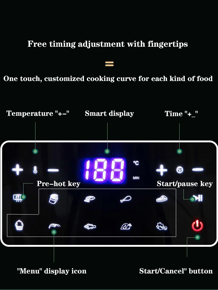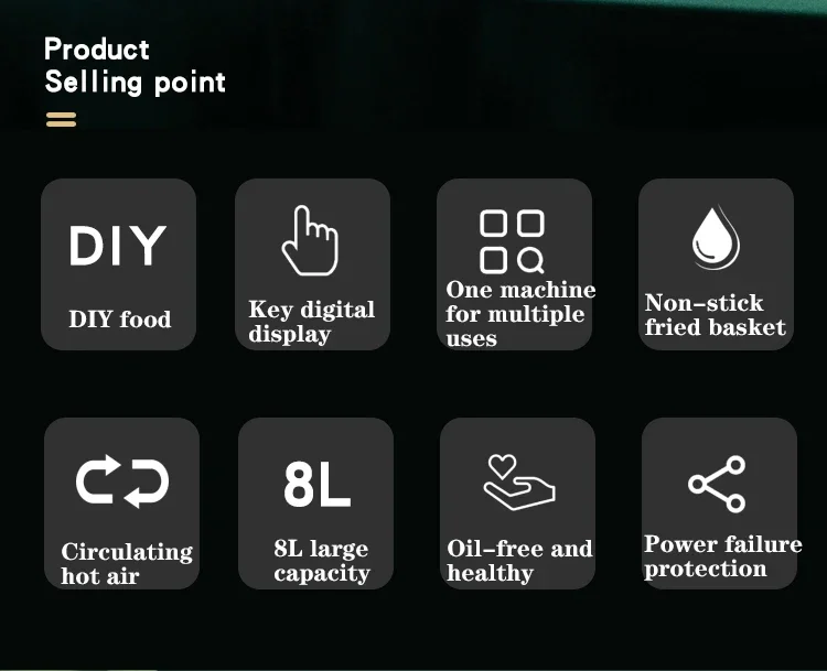 8L Household Smoke-Free Oven r 220V/1600W Chicken French Fries Pizza Salt-Free Air Frye KDE-579D Electric Fryer