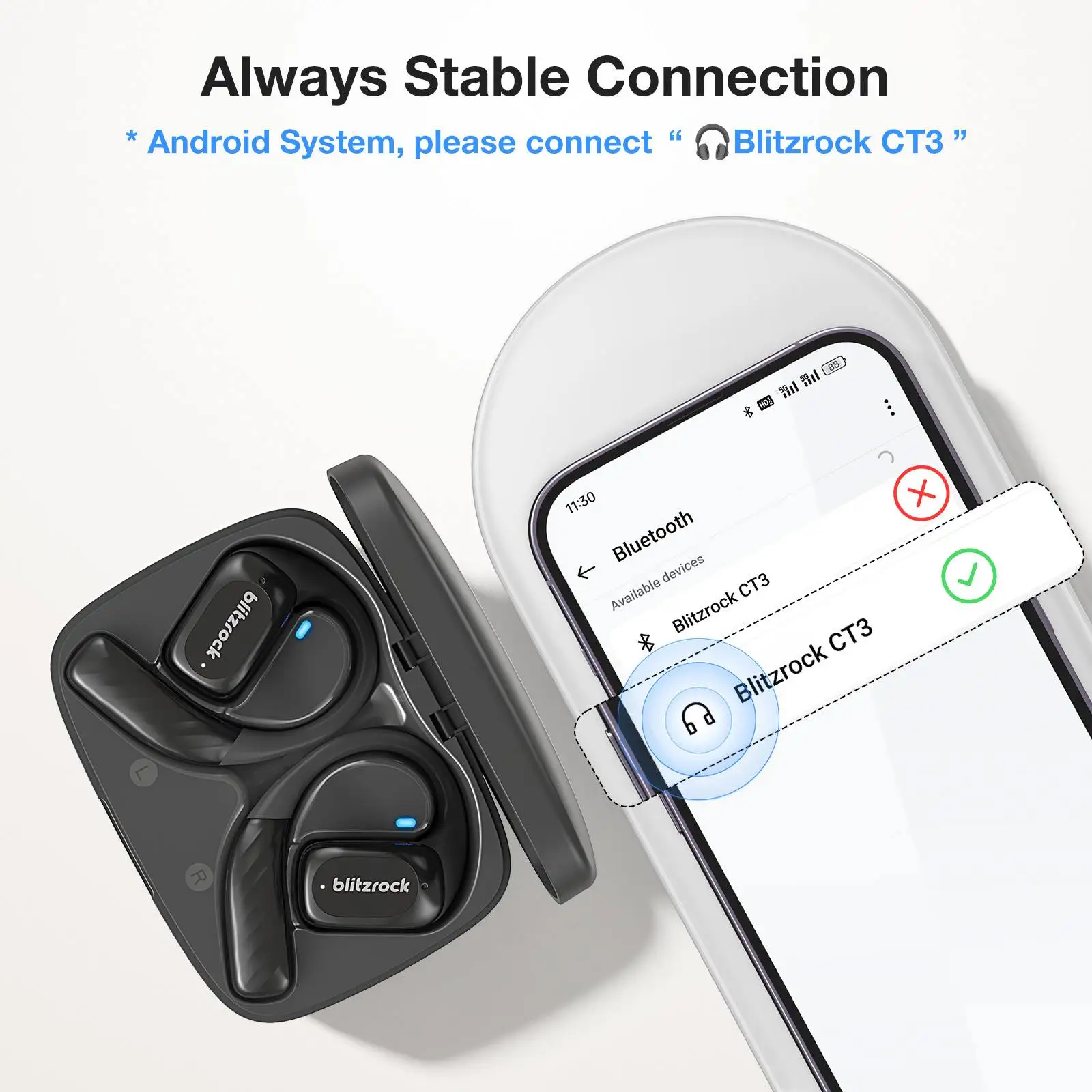 BlitzWolf Blitzrock BR-CT3 Open Ear Earbuds bluetooth V5.4 Earphones Air Conduction Earhook Enhanced Bass 4 Mics Clear Calls