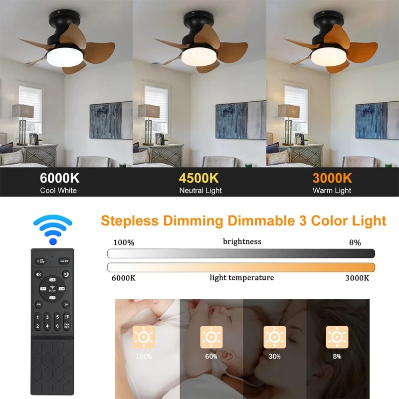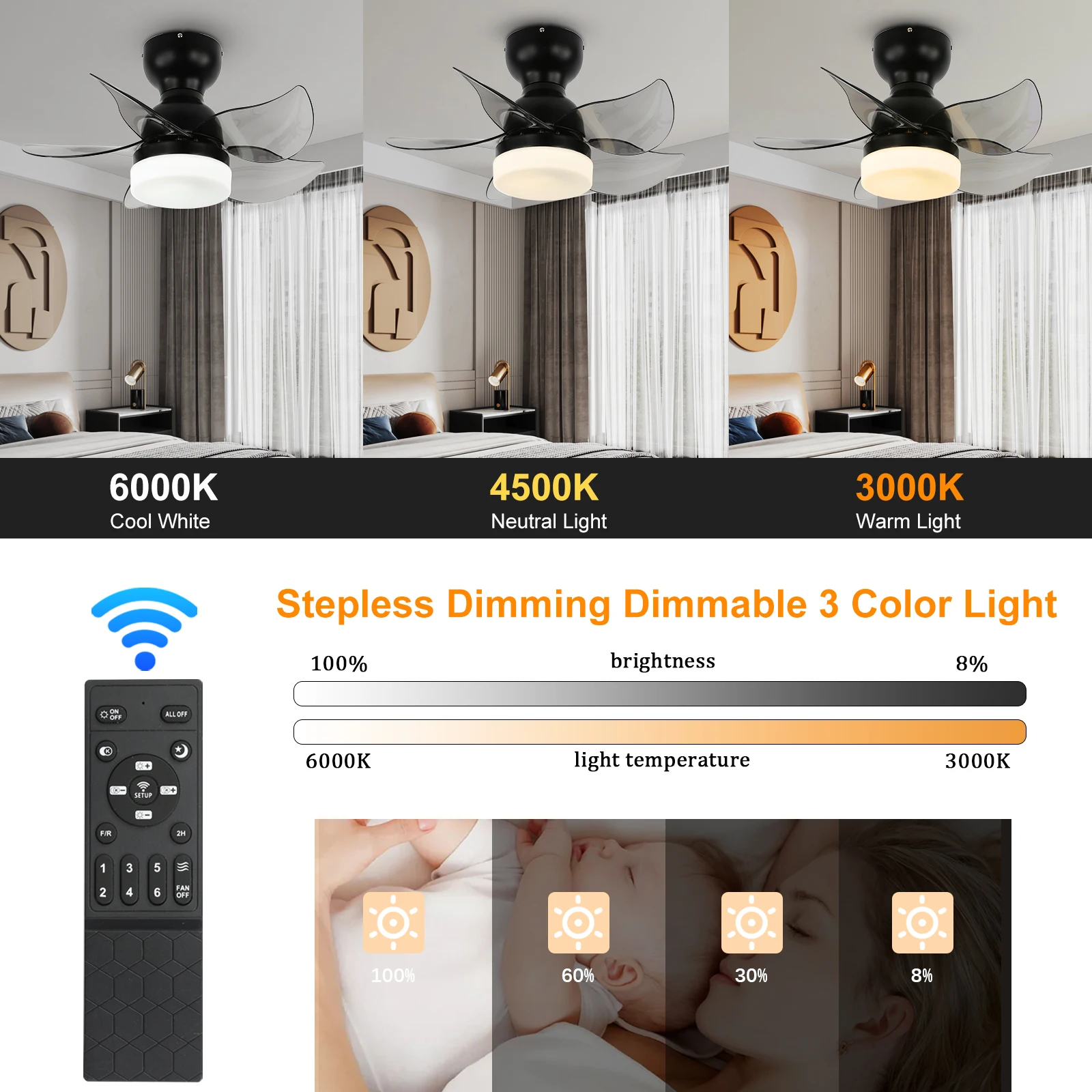 Ceiling Fan with Light and Remote Control LED Ceiling Fans with 3 Fan Blades for Indoor Bedroom Living Room Dining Room Kitchen