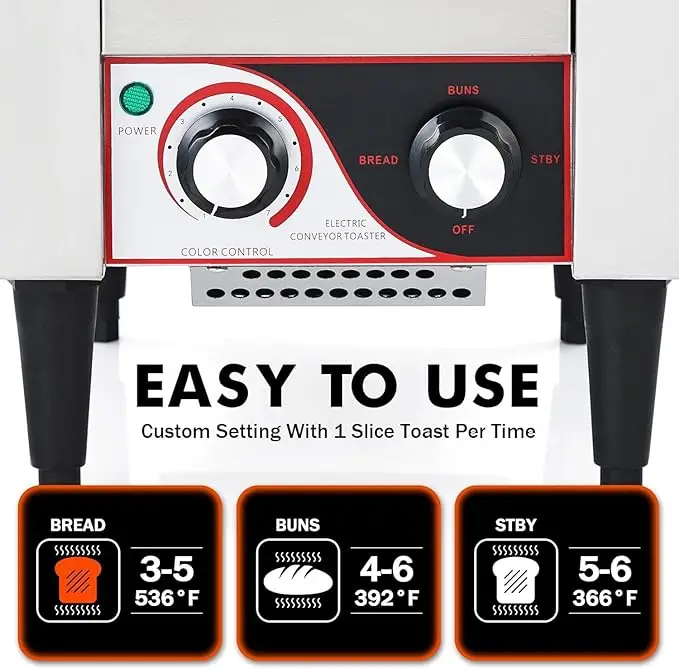 Easy to Operate: Built from heavy-duty stainless steel, this countertop toaster is user-friendly with simple knobs for speed and temperature adjustments, making it quick and efficient for any kitchen.