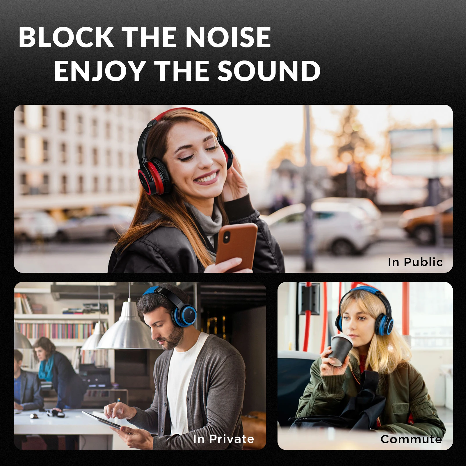 E7BPRO Active Noise Cancelling Wireless Headphones, Over-Ear Headphones with Mic, Rich Deep Bass, Long Battery Life