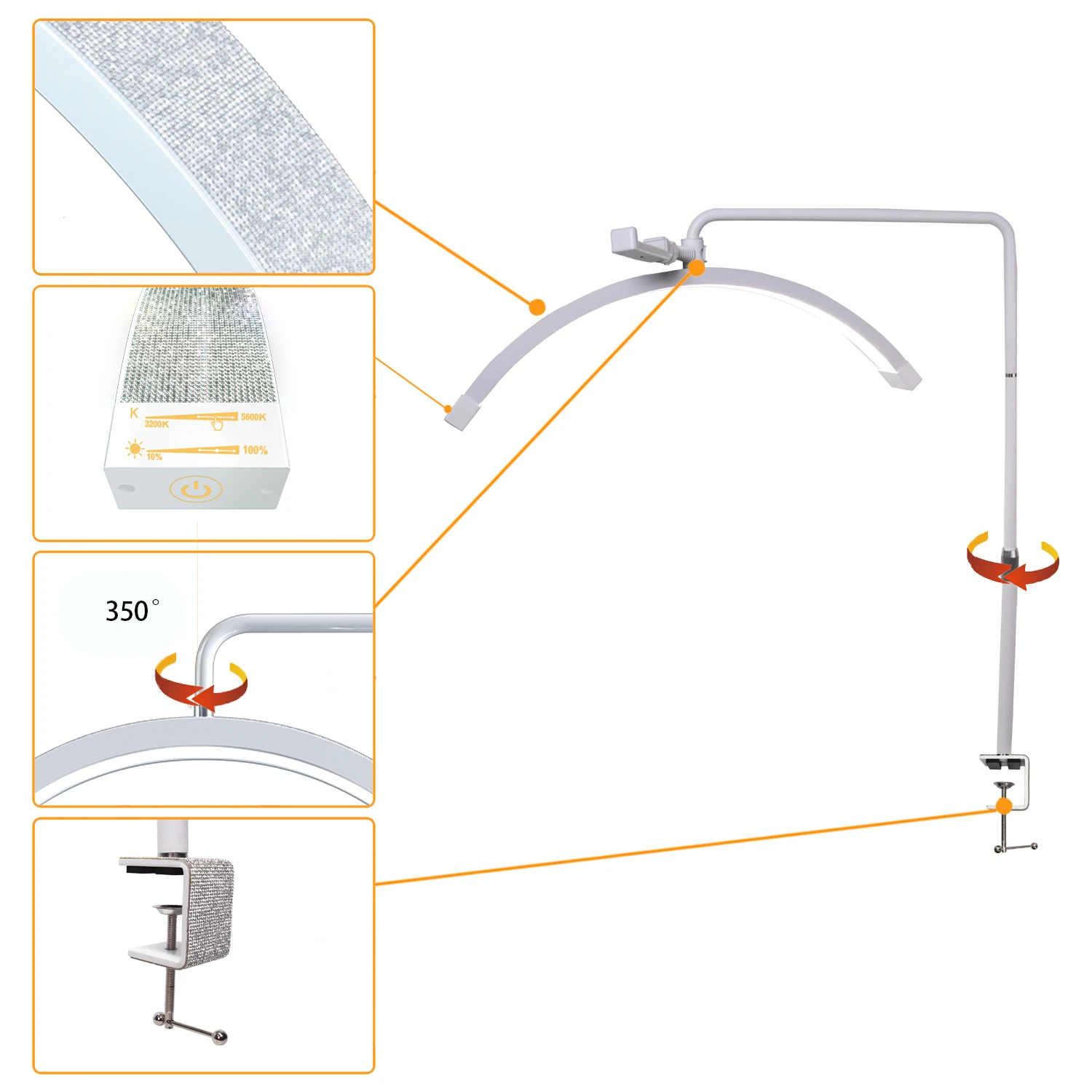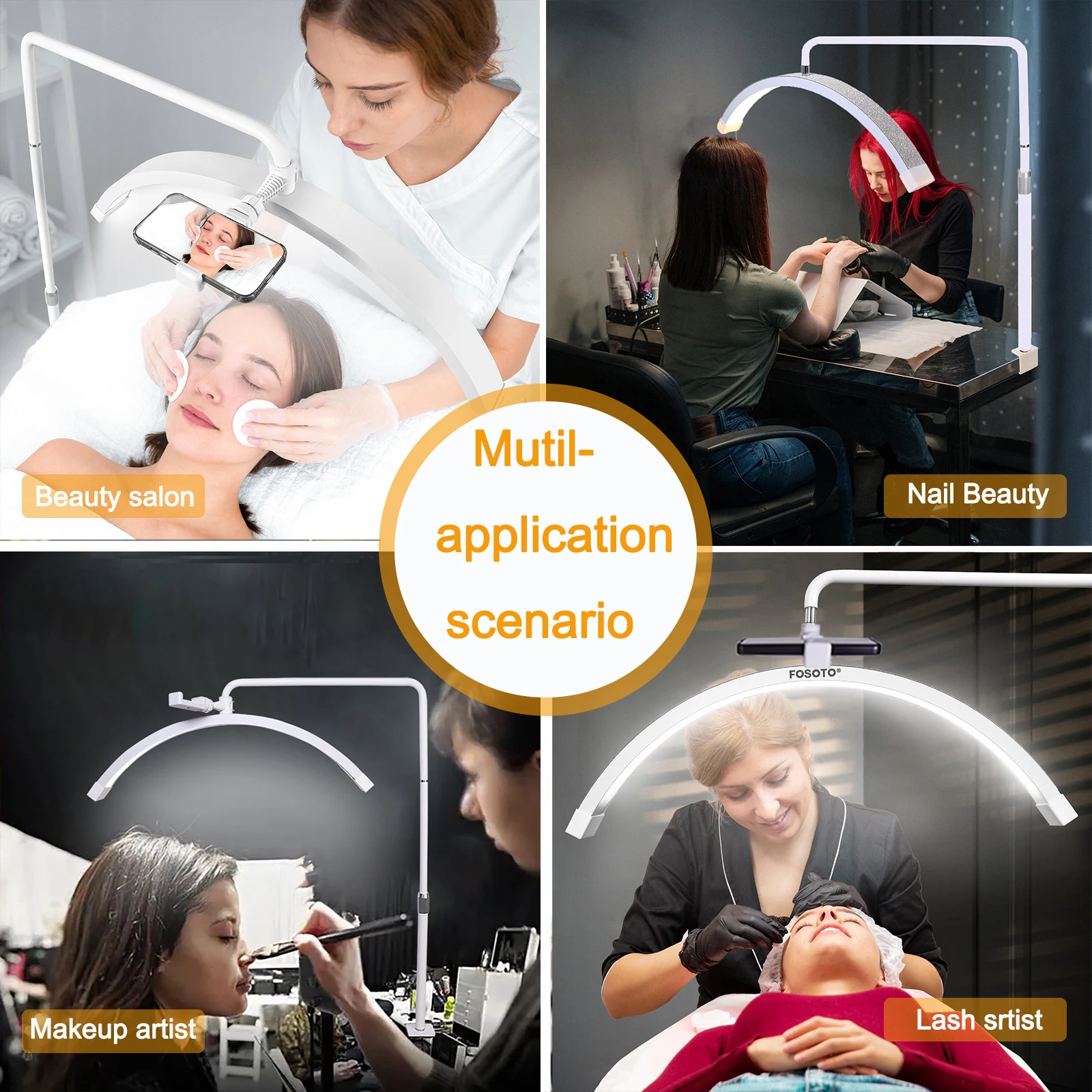 FOSOTO LED MOON LIGHT is an amazing light,The best and most popular light for lashing, makeup, tattoo, facialists, and other beauty services.Updated Touch version.Arc design reduces shadows,The height can be adjusted to suit any setting.Adjust the screw to change the height. Adjust the screw can rotate the lamp 360 degree,it is the best chioce for the beaty salon.updated Touch screen version.