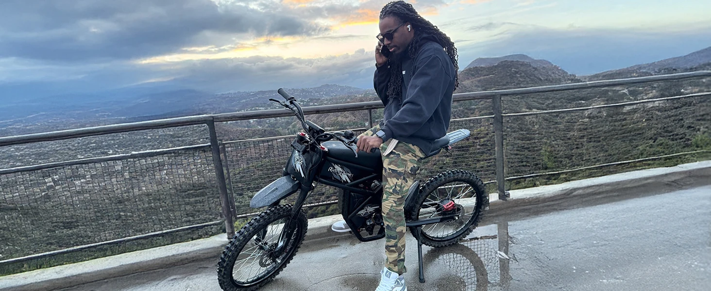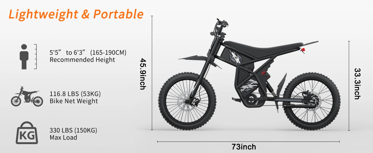 Throttle disable function, speed limit settings, 3 speed modes, triangular storage bag attached to the bike body, motorcycle footpegs included in the package.