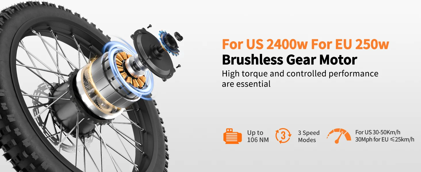 Motor Power: For US 2400W For EU 250W, 48V For US 2400W For EU 250W