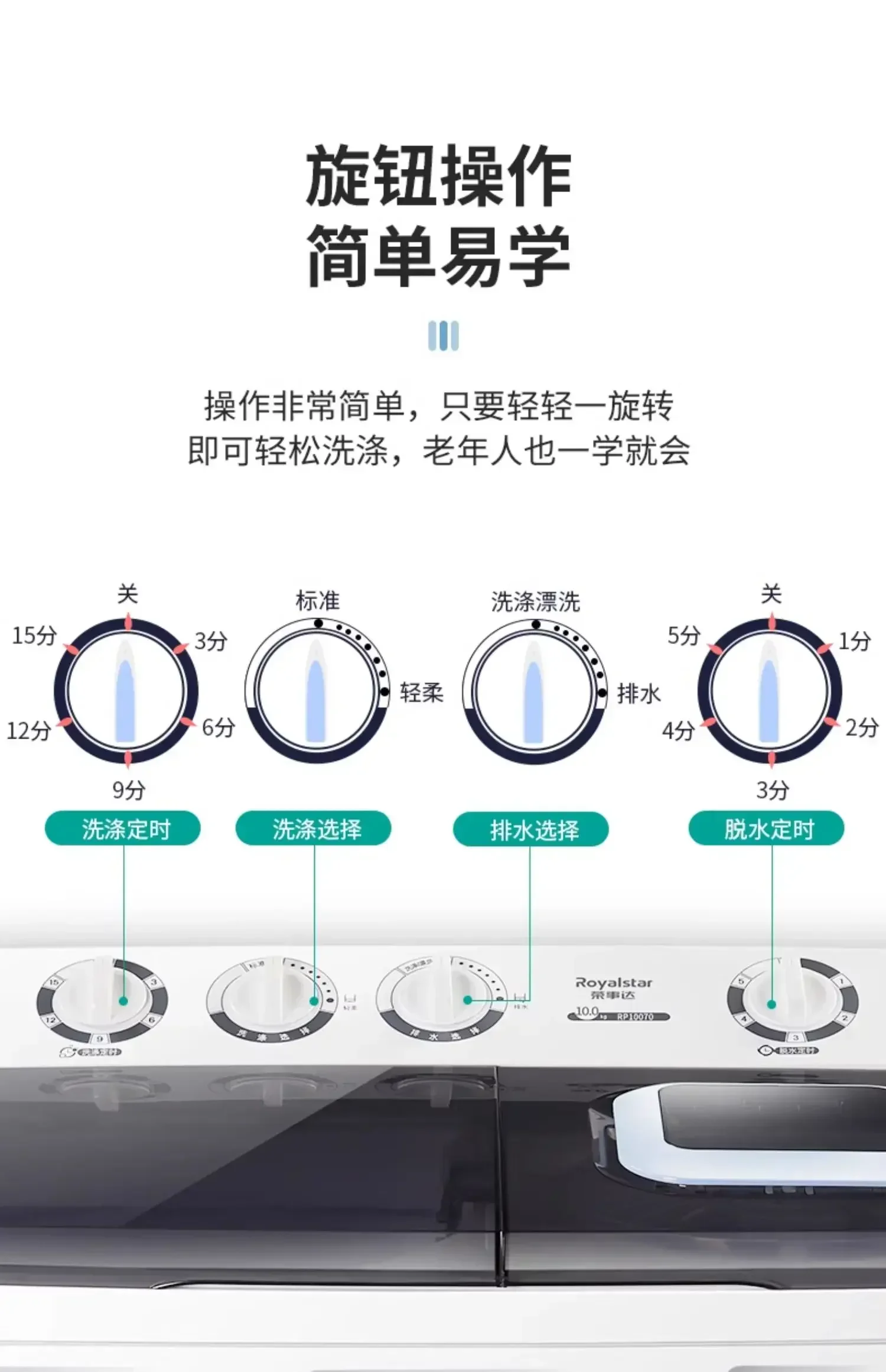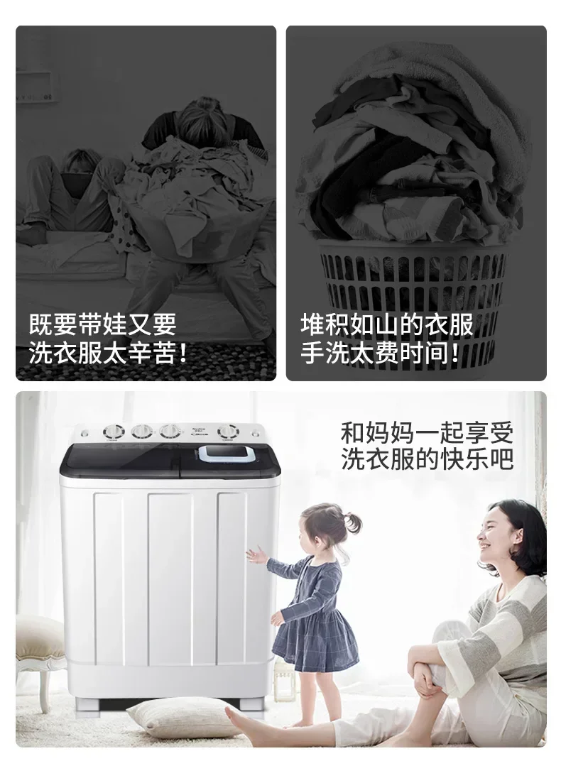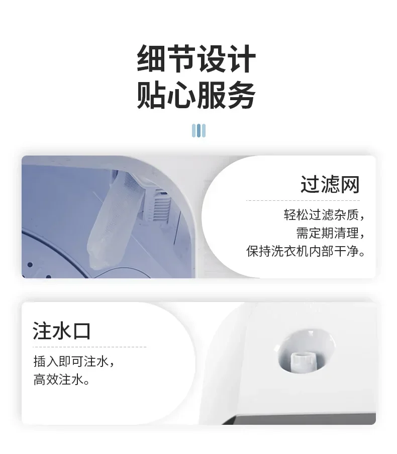 Household semi-automatic washing machine large capacity dormitory suitable for mini double cylinder pulsator washing machine