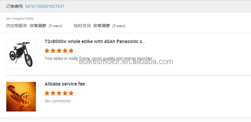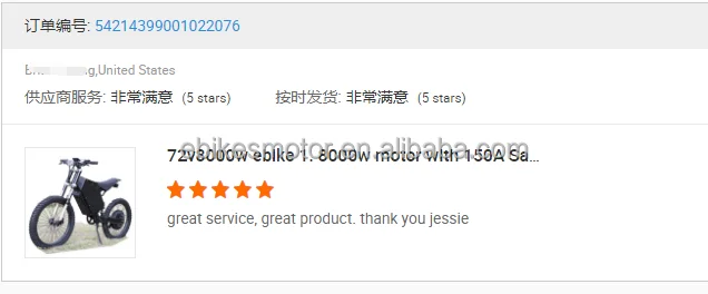 Q1. What is your terms of payment? A: T/T 30% as deposit, and 70% before delivery. We'll show you the photos of the products and packages before you pay the balance. Q2. How about your delivery time? A: Generally, it will take 7 to 20 days after receiving your advance payment. The specific delivery time depends on the items and the quantity of your order. Q3: How about your Warranty? A: Motor: 2 year Charger: 1 year Controller: 1 year Battery: 18 months