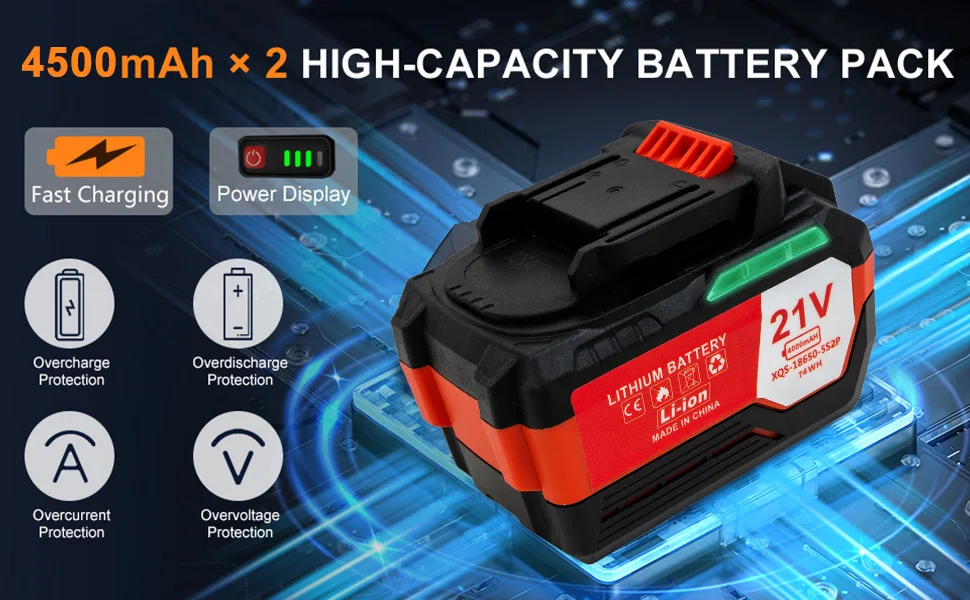 Upgraded Leaf Blower with 2* 21V 4.5Ah Batteries and Fast Charger - The leaf blower is equipped with a powerful copper motor and turbine technology to achieve - fast charging, low energy consumption, and high wind power. Give you plenty of time to blow away leaves and refresh your garden.