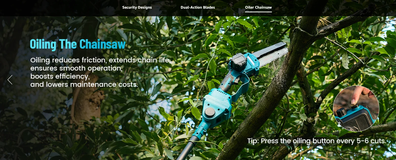 Smart Oiling for Smooth Cuts: Let the tool take care of itself while you focus on the task. The automatic oiling system keeps your chain perfectly lubricated, so every cut is fast and fluid. Less downtime, more done—without breaking your rhythm